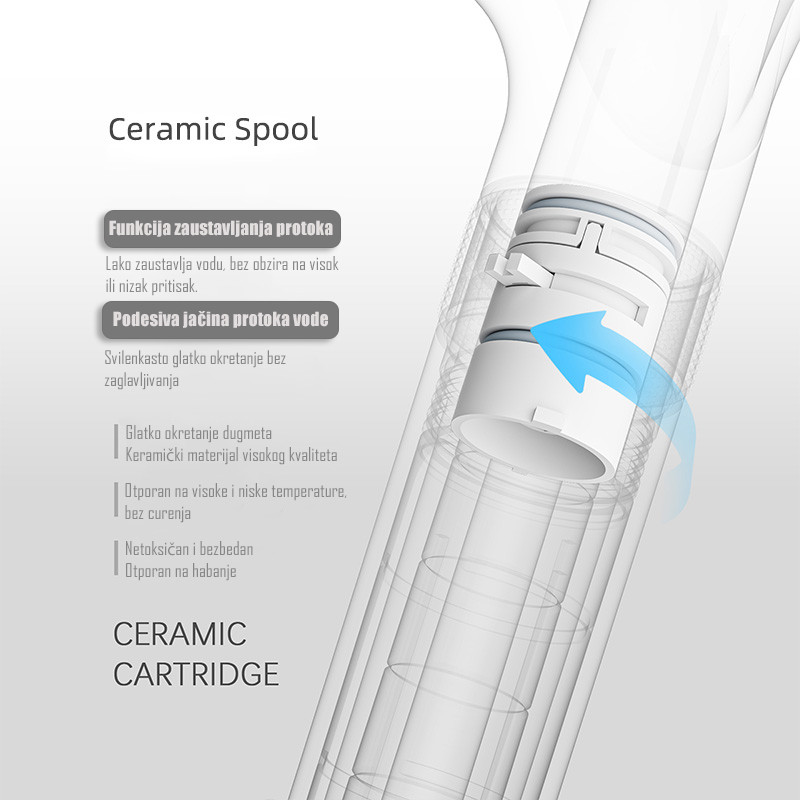 • Na dršci i tuš-glavi nalazi se prozirni inspekcioni otvor kroz koji se lako može videti stanje filtera – bez ikakvog rastavljanja