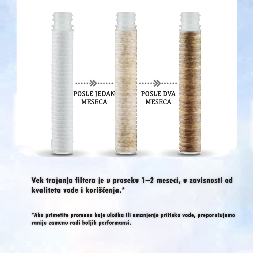 Jedan PP filter ima vek trajanja 2–3 meseca pri normalnoj upotrebi, tako da jedno pakovanje obezbeđuje minimum pola godine neometanog rada.